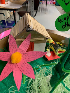 We have completed our Books in Bloom project! It came out so cute. The kids decided on a 'fairy garden' idea. For our last literature circle book group, all of our books deal with social situations- and mostly take place in school setting. Many of the themes deal with bullying, acceptance, perseverance, peer pressure, and other elements of social awareness!